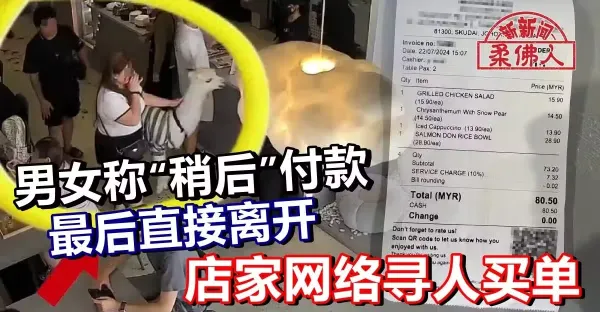 男女稱「稍後」付款 最後直接離開 店家網絡尋人買單