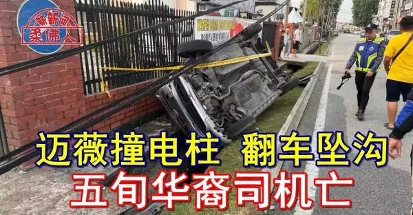 邁薇撞電柱 翻車墜溝 五旬華裔司機亡