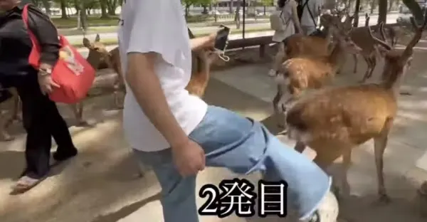 日本奈良「遊客暴力踹鹿」全被錄!4次暴行曝光,日網友氣炸:不可原諒!