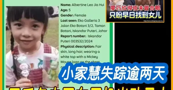 華裔女童失蹤案|小家慧失蹤逾兩天 柔千名電召車司機出動尋人