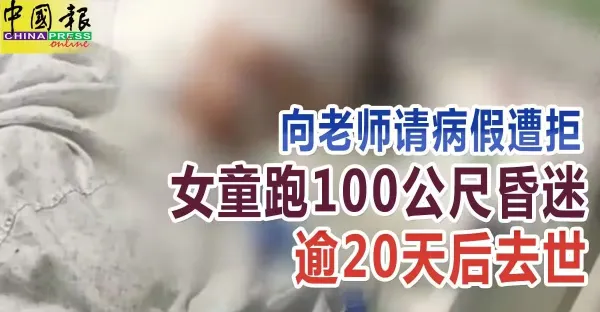 向老師請病假遭拒 女童跑100公尺昏迷 逾20天後去世