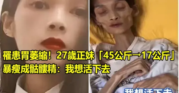 罹患胃萎縮!27歲正妹「45公斤→17公斤」暴瘦成骷髏精:我想活下去
