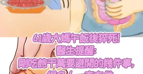 61歲大媽午飯後猝死!醫生提醒:剛吃飽千萬要避開的幾件事, 很多人一直在做