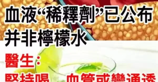 血液「稀釋劑」已公布,並非檸檬水,醫生提醒:堅持喝, 血管或變通透