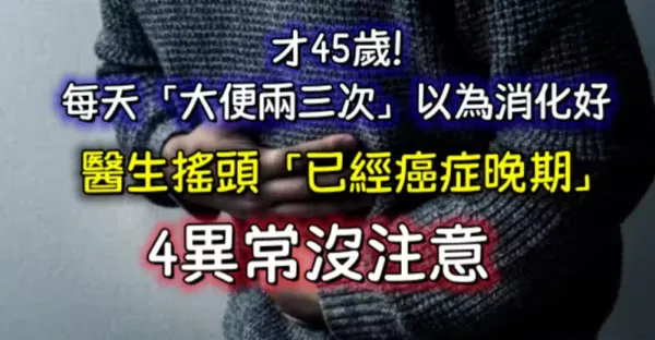 才45歲!他每天「大便兩三次」以為消化好,醫生搖頭「已經癌症晚期...」4異常沒注意