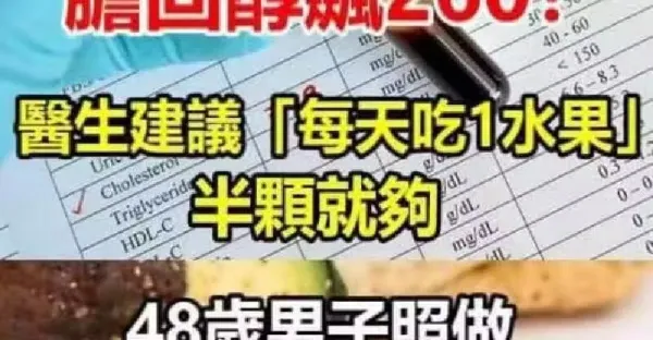 膽固醇飆260!醫生建議「每天吃1水果」半顆就夠 48歲男子照做「三個月後擺脫藥物」 找回健康
