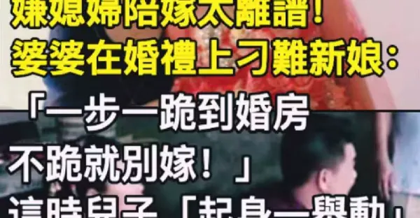 嫌媳婦陪嫁太離譜!婆婆在婚禮上刁難新娘:「一步一跪到婚房,不跪就別嫁!」這時兒子「起身一舉動」震驚在場賓客