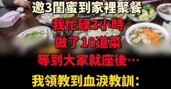 我55歲退休半年, 心血來潮邀3閨蜜到家裡聚餐,我忙碌3小時、做了10道菜,等到大家就座後…我領教到血淚教訓:再有錢有閒,也別請人到家裡吃飯