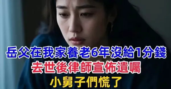 岳父在我家養老6年了 沒給過1分錢,去世後律師宣布遺囑,小舅子們慌了