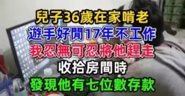 兒子36歲在家啃老,遊手好閒17年不工作,我忍無可忍將他趕走, 收拾房間時發現他有七位數存款!