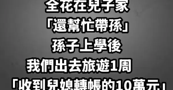 我和老伴每月退休金5萬!全花在兒子家「還幫忙帶孫」 孫子上學後,我們出去旅遊1周「收到兒媳轉帳的10萬元」我頓時清醒了…