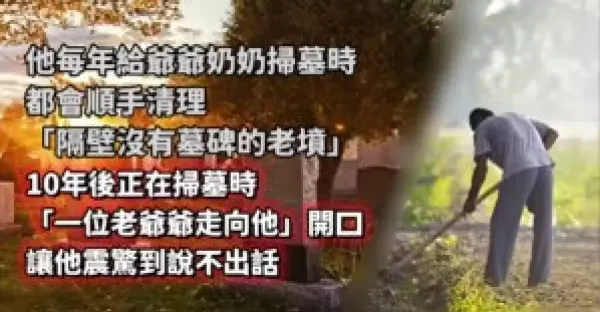 他每年給爺爺奶奶掃墓時,都會順手清理「隔壁沒有墓碑的老墳」10年後正在掃墓時「一位老爺爺走向他」開口讓他震驚到說不出話~