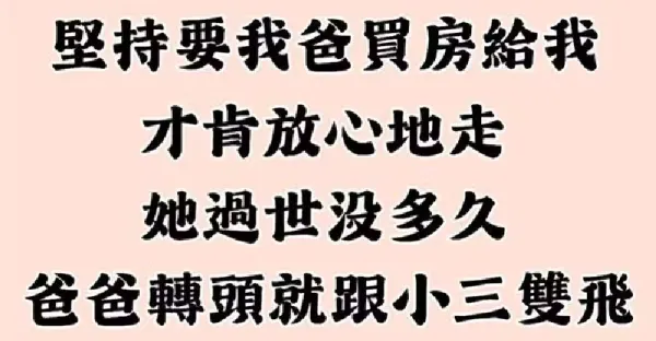 爸爸出軌!患癌媽媽臨走前「要爸爸買房給我」媽媽走後「爸爸轉頭就跟小三雙飛...」現世報卻來了
