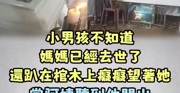 小男孩不知道媽媽已經去世,還趴在棺木上痴痴望著她,當阿姨聽到他問出「這一個問題」心臟都快裂開了