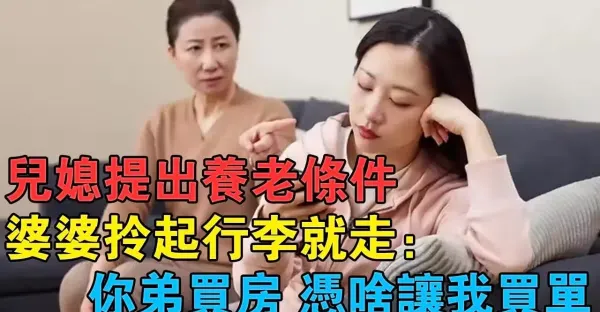 兒媳提出養老條件,婆婆拎起行李就走:你弟買房,憑啥讓我買單