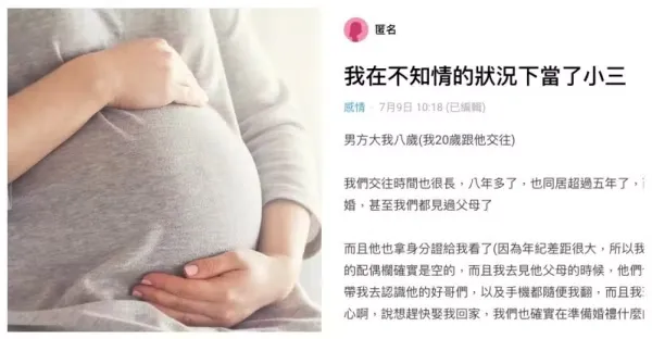 我和大8歲男友交往8年,即將結婚,就在前幾天,自稱他老婆的女人找上門,歇斯底里罵我「小三破壞家庭」!我才知道他早有家室,女兒都生2個了...現在,我懷胎6月,孩子根本拿不掉,人生一夕毀了,該怎麼辦才好?