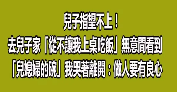 兒子指望不上!去兒子家「從不讓我上桌吃飯」無意間看到「兒媳婦的碗」我哭著離開:做人要有良心