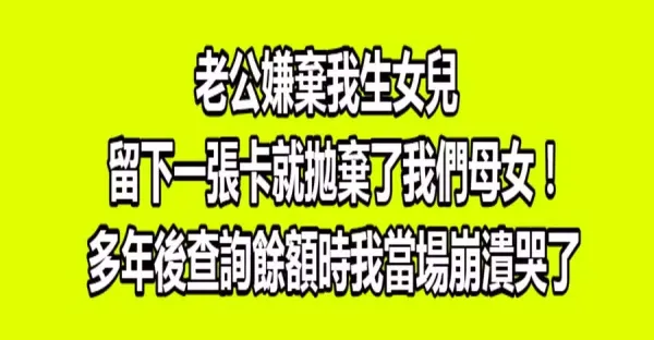 老公嫌棄我生女兒 ,留下一張卡就拋棄了我們母女! 多年後查詢餘額時我當場崩潰哭了!