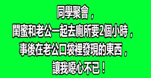 同學聚會,閨蜜和老公一起去廁所要2個小時,事後在老公口袋裡發現的東西,讓我噁心不已!
