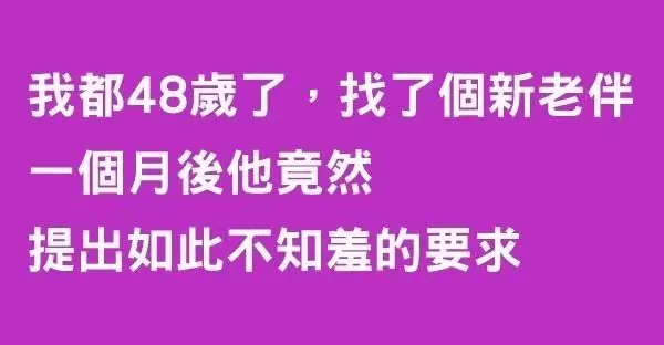 我都48歲了,找了個新老伴,一個月後他竟然提出如此不知羞的要求