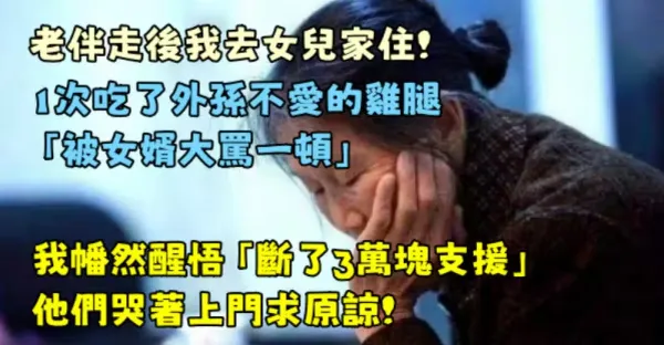 老伴走後我去女兒家住!1次吃了外孫不愛的雞腿「被女婿大罵一頓」我幡然醒悟「斷了3萬塊支援...」他們哭著上門求原諒