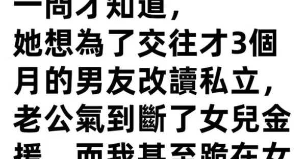 女兒考上國立大學後遲遲不報到,一問才知道,她想為了交往才3個月的男友改讀私立,老公氣到斷了女兒金援,而我甚至跪在女兒面前求她,沒想到女兒後來的舉動讓我更心寒... #該怎麼做才好