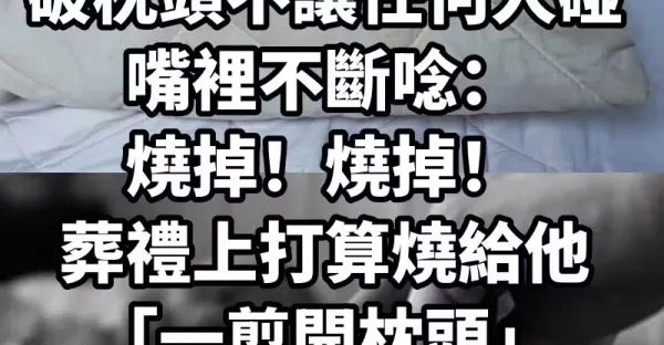 公公臨終前「緊抓破枕頭不讓任何人碰」嘴裡不斷念:燒掉!燒掉! 葬禮上打算燒給他「一剪開枕頭」3兒女淚崩:瞞我們那麼多年...