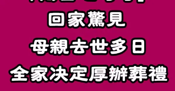兒子一家去旅行「獨留七旬母」回家驚見「母親去世多日」傷心欲絕!全家決定厚辦葬禮「七歲兒子蹦出一句話」全家腿軟