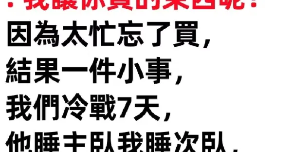 我加班晚回家,先生坐沙發不滿「 我讓你買的東西呢?」因為太忙忘了買,結果一件小事,我們冷戰7天...他睡主臥我睡次臥,半夜手機螢幕突亮起…我一看急奔房門哭求