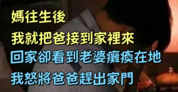 媽往生後我就把爸接到家裡來, 回家卻看到老婆癱瘓在地,我怒將爸爸趕出家門.