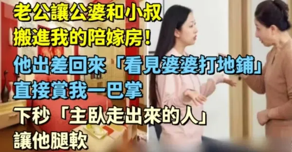 老公讓公婆和小叔搬進我的陪嫁房! 他出差回來「看見婆婆打地鋪」直接賞我一巴掌,下秒「主臥走出來的人」讓他腿軟~