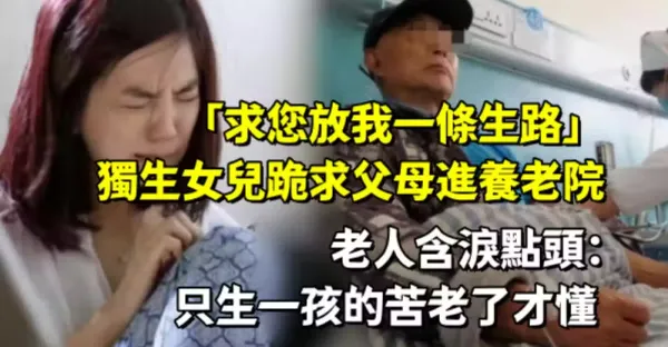 「求您放我一條生路!」獨生女兒「跪求父母進養老院」老人含淚點頭:只生一孩的苦,老了才懂!