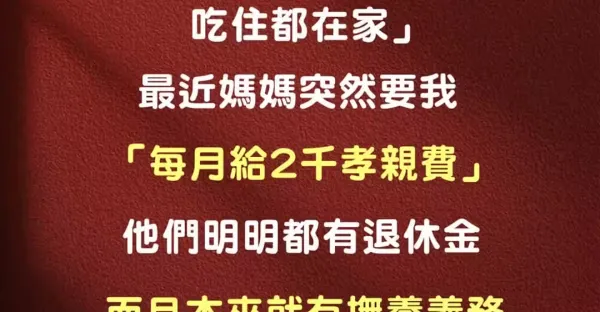 月入6萬!他吃住靠家裡「被媽討2千孝親費」 不爽喊「養我是義務」網酸:生你有夠衰