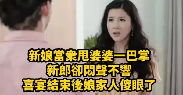 新娘當眾甩婆婆一巴掌,新郎卻悶聲不響,喜宴結束後娘家人傻眼了