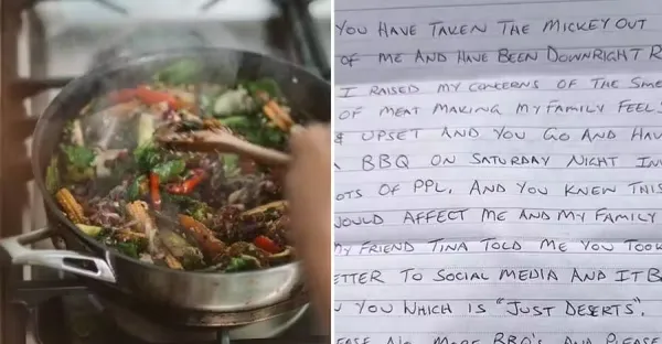鄰居吃素,聞到肉味會想吐,希望我煮飯時關窗,但我已經約好朋友們烤肉,當我們烤完「鄰居遞給我一封信」...