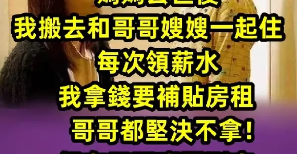 「媽媽去世後我搬去和哥哥嫂嫂一起住,每次領薪水我拿錢要補貼房租哥哥都堅決不拿!但有天下班回到家姪子笑笑對我說了一句話,我當天就冒雨搬家….」