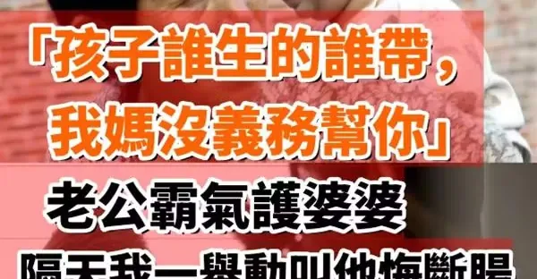 「孩子誰生的誰帶,我媽沒義務幫你」,老公霸氣護婆婆,隔天我一舉動叫他悔斷腸