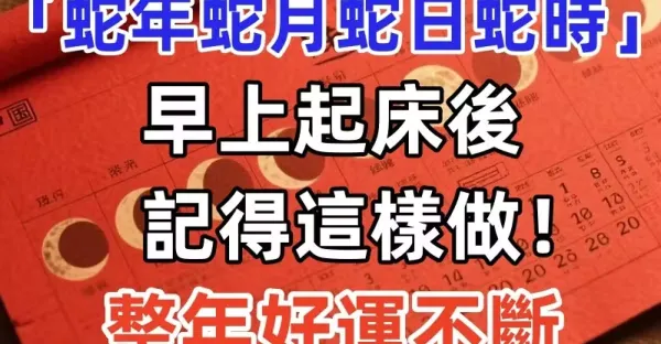 4月30日是罕見的「蛇年蛇月蛇日蛇時」早上起床後記得這樣做!整年好運不斷、財神住你家!