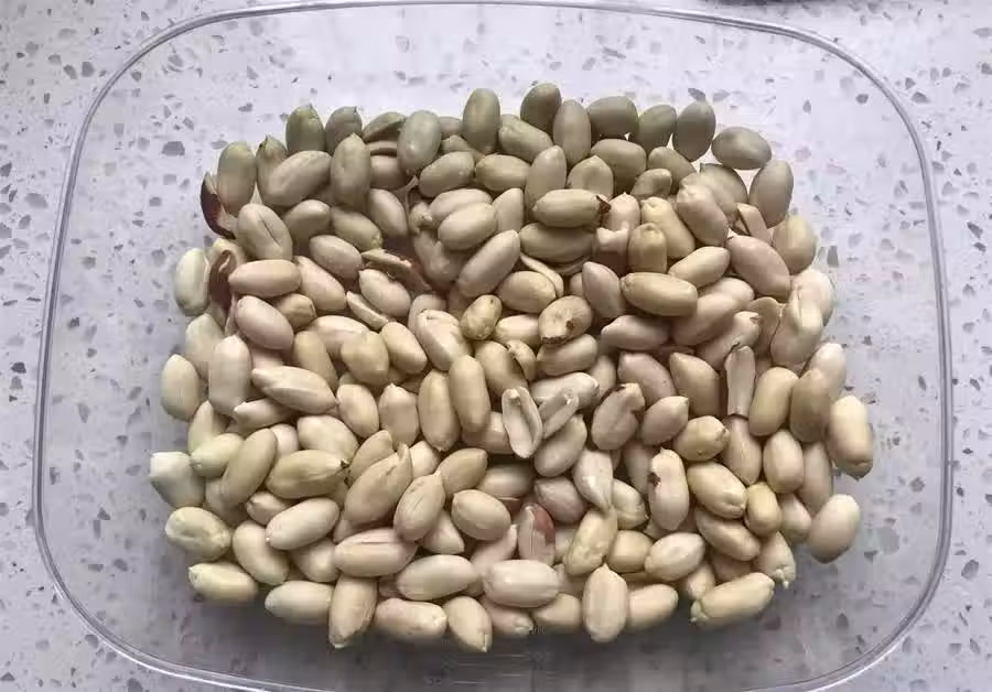1、花生米提前烤熟,去掉外皮,或者直接買熟的花生仁。