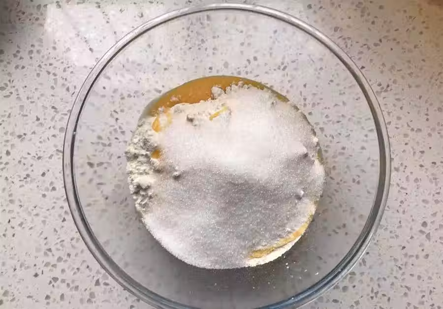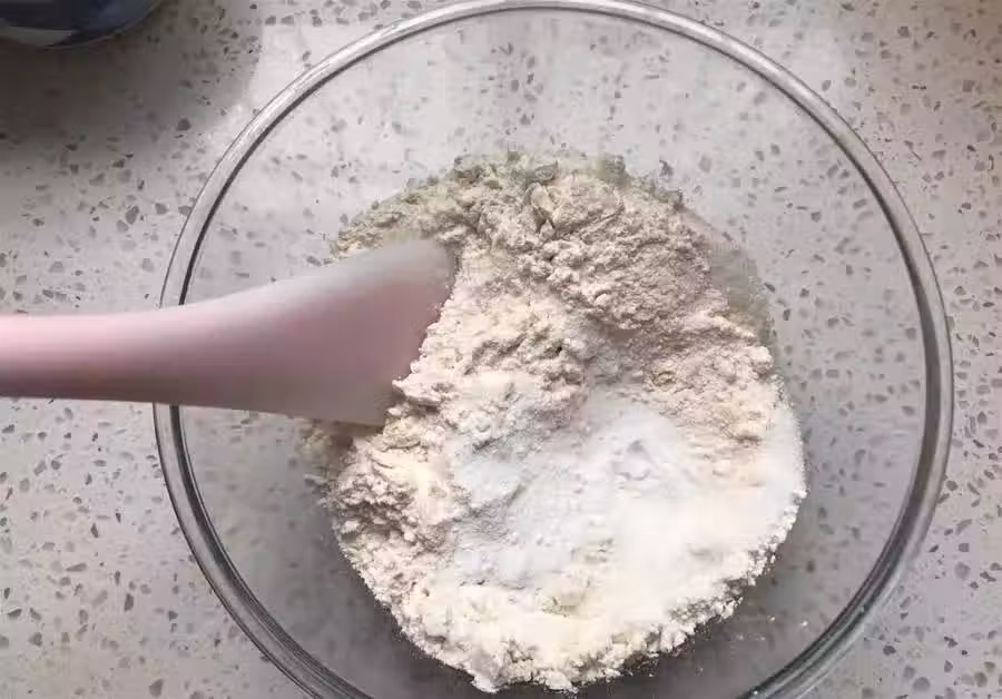 8、加入小蘇打和泡打粉,用刮刀拌勻。