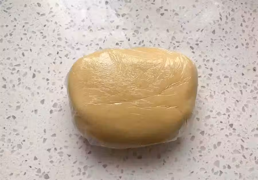 9、揉成麵團,保鮮膜裹起來,放入冰箱冷藏30分鐘。