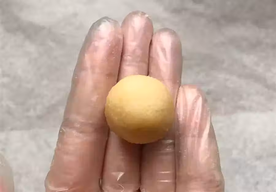 10、取出麵團,把麵團分成10克一個麵團,搓成小球。