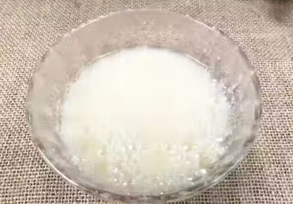 4.另一個碗中再加入幾滴白醋,加入白醋麵粉在發酵的過程中就會產生很多小氣泡了。這樣蒸出來的饅頭就不會有死面的現象啦。攪拌均勻後同樣放置一旁備用。