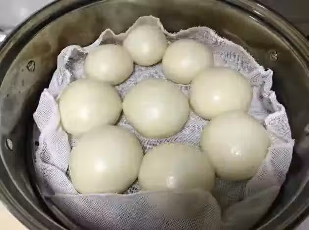 8.然後將這個醒發好的麵團放在案板上,給它揉搓排氣五分鐘。再擀成長條狀,同樣再分成大小均勻的劑子,將它揉成饅頭的形狀。然後放在溫水鍋中再次醒發15分鐘。15分鐘後,開大火將其燒開。水開後,再轉中火給它蒸25分鐘。25分鐘後就可以出鍋裝盤啦。
