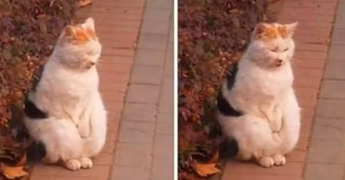 貓咪在路邊不停地「搓手取暖」,萌翻路人,貓咪:肚子好痛,請幫幫我