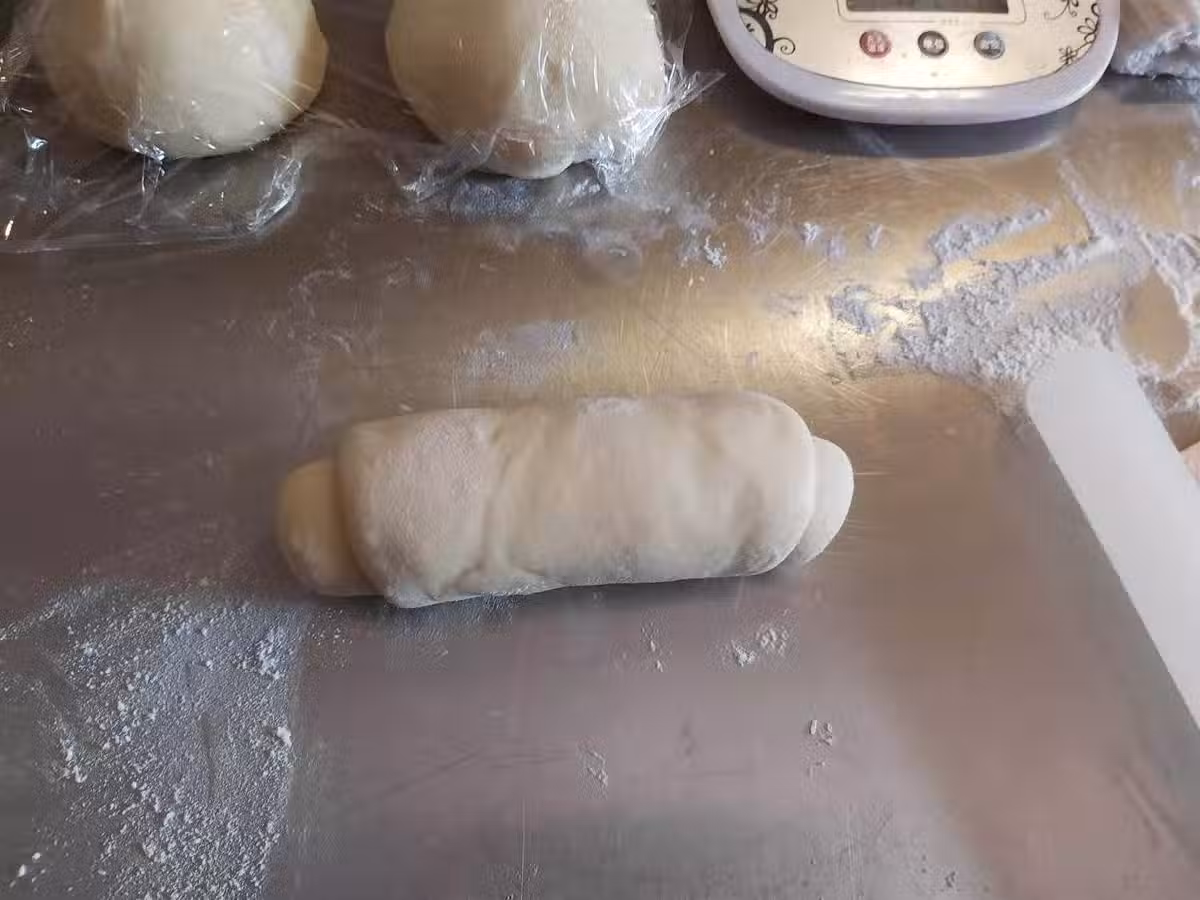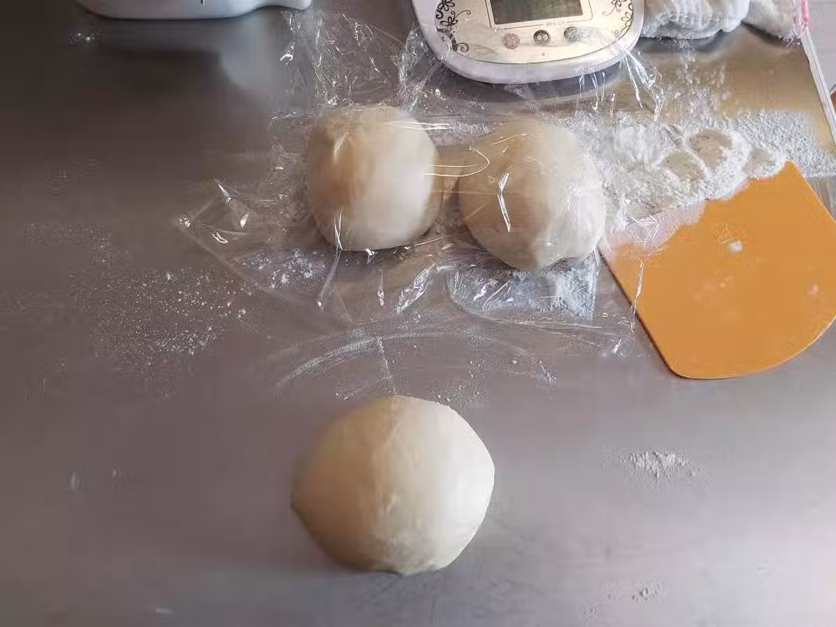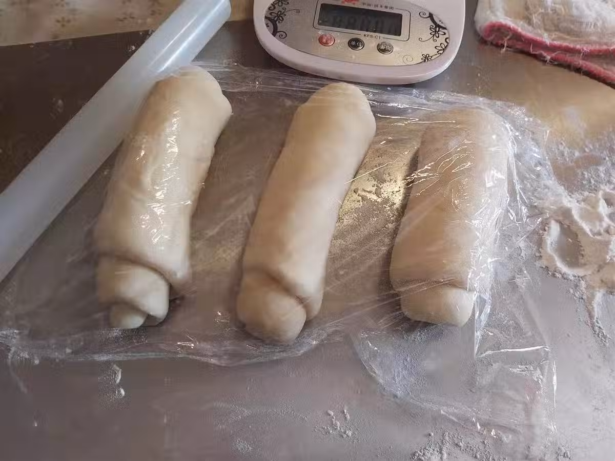 11.其餘兩個也同樣操作,然後蓋上保鮮膜,再次鬆弛幾分鐘。
