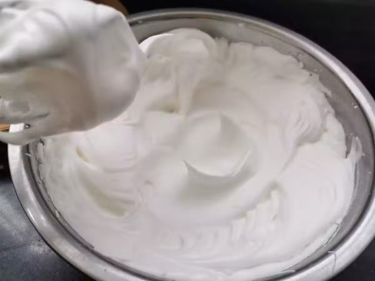 2、打蛋盆要無水無油,蛋清打發到位,蛋糕組織才能蓬鬆。