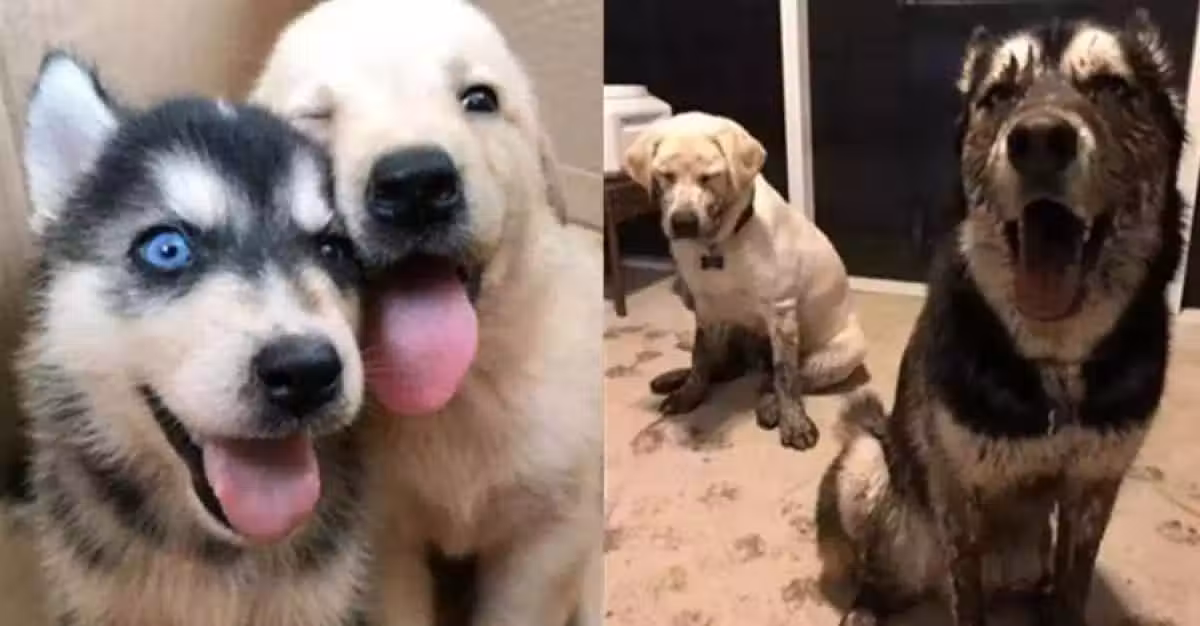 二哈帶拉布拉多出門玩,回家二哈笑得像傻子,拉布拉多哭的像孩子