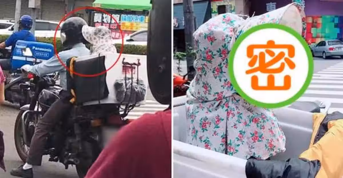 阿伯塑膠箱載「老伴」上街畫面溫馨,「小碎花背影」一扭頭網笑:原來是黑妞啊~