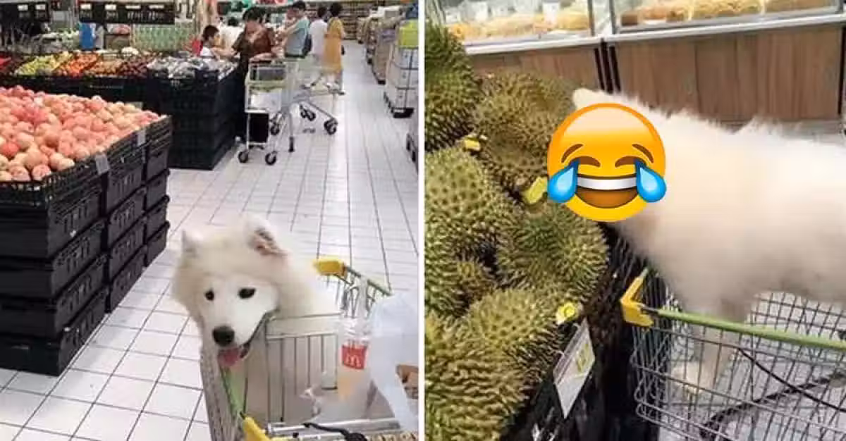 帶薩摩耶逛超市,原本無精打采的牠竟「一頭紮進榴槤堆裡」,網笑:「有品位的狗」